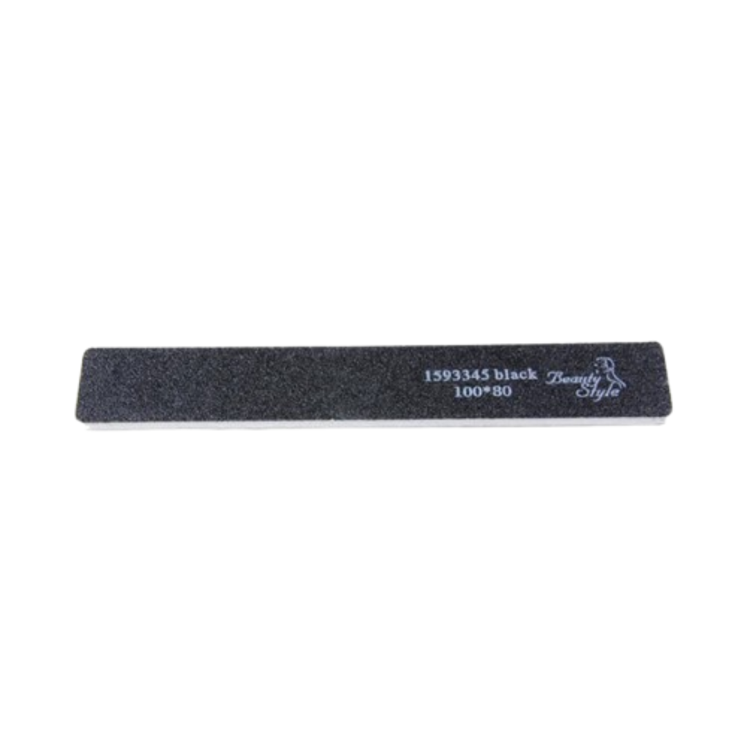 La lima negra ancha 80/100 está diseñada para dar forma y trabajar uñas acrílicas y de gel con mayor rapidez y eficacia. Su grano doble y superficie ancha permiten un limado uniforme, ideal para uso profesional en salón.