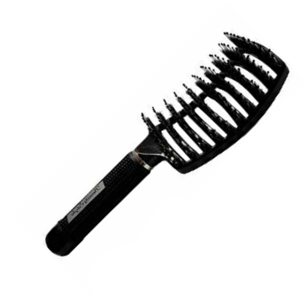Este cepillo combina cerdas naturales y sintéticas en un diseño curvo que se adapta al cuero cabelludo, evitando tirones.
